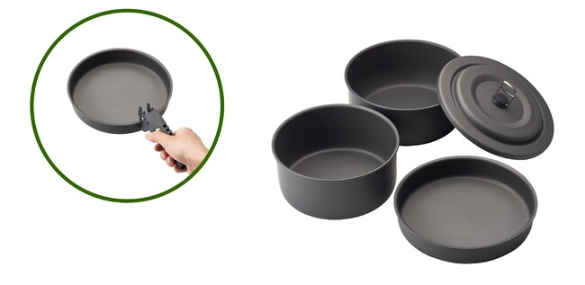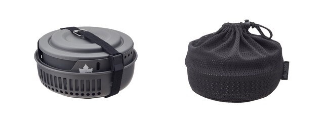 構成 : クッカー(大鍋、小鍋、フライパン)、コンロ、グリッパー、アルコールバーナー、収納袋