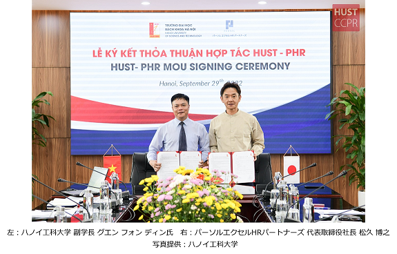 総合人材サービスのパーソルグループのパーソルエクセルHR パートナーズ株式会社(本社: 大阪府大阪市、代表取締役社長: 松久 博之、以下パーソルエクセルHR パートナーズ)は、ハノイ工科大学(Hanoi University of Science and Technology、以下ハノイ工科大学)と、在校生に対する日本語教育クラスの開講およびベトナム人材の採用・就職支援・学生サポートに関する協力関係を促進することを目的とした「日本語教育クラス寄付講座開講」に関する提携契約を締結、2022年9月29日に調印式を執り行いました。