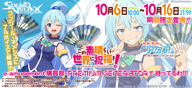 アニメ「この素晴らしい世界に祝福を!」×『SOUND VOLTEX EXCEED GEAR』コラボ開催!女神アクアがネメシスクルーとしてゲーム内に降臨!