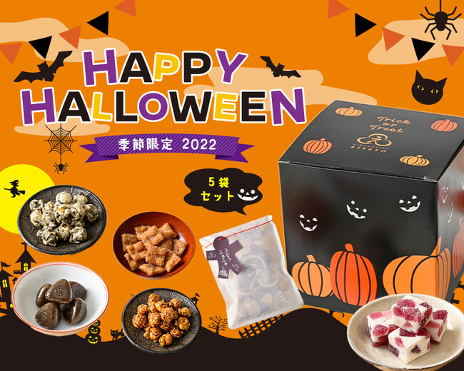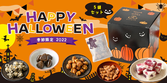 この度、公式オンラインストアでは「EC限定・ハロウィンキューブBOX おやつ菓子5袋詰合せ」をリリースいたしました。