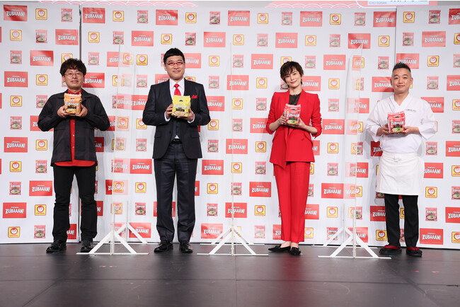 白熱トークでお腹がすいてきた登壇者たちの前に「マルちゃんZUBAAAN!背脂濃厚醤油」が登場。米倉さんは「香りが本物。インスタントラーメンの枠の中にいない気がします。」というコメントに対し大和さんは「袋麺の新しいステージに来ていますね。」とコメント。大好きなZUBAAAN!にご満悦の登壇者たちでした。