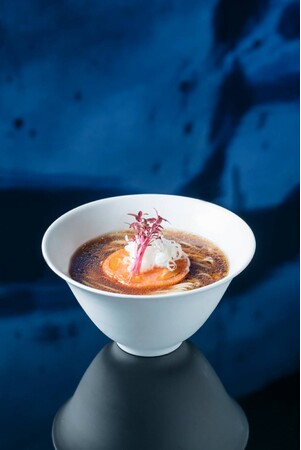 ヴィーガンとは思えない程の深いコクと香りが特徴の「ヴィーガンラーメン 深緋(醤油)」、「ヴィーガンラーメン 山吹(辛味噌)」などのほか、京都 大原で摘んだ野草を使用した「ヴィーガンラーメン 八草(甘辛味噌)」や、ラーメンスープの出がらしを再利用した「美山 五味の湯葉巻き」など、フードロスゼロを目指したメニュー開発も行っています。