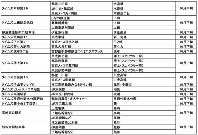 【サステナビリティアクション】パーク&ライドが可能なタイムズパーキング レール&カーシェアが可能なタイムズカーステーション 10月のオープン情報