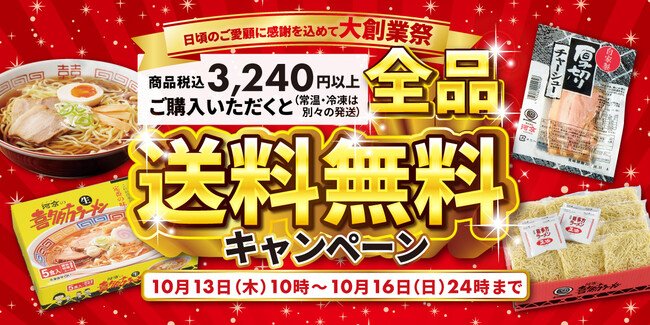 株式会社河京(本社:福島県喜多方市、代表取締役:佐藤富次郎)は、2022年10月13日(木)から大創業祭としまして、送料無料キャンペーンを実施します。