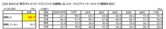 東京オリンピック・パラリンピックを観戦したのは65.7%。