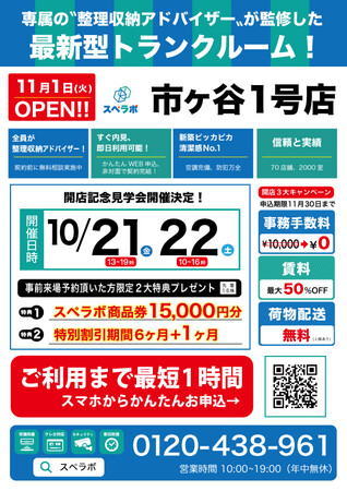 オープンに合わせ10月21日(金)、22日(土)に見学会を実施しますので、ぜひ【スペラボ・市ヶ谷1号店】にお越しくださいませ。