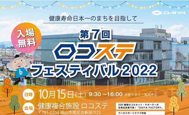 医療用品メーカーのダイヤ工業株式会社(本社:岡山県岡山市 代表取締役:松尾浩紀)主催の第7回ロコステ フェスティバル2022が2022年10月15日(土)に健康複合施設ロコステ(岡山県岡山市南区古新田1125)にて開催されます。