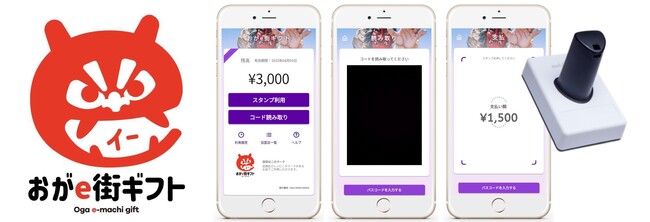 「おがe街ギフト」は、男鹿市内の飲食店・小売店・宿泊施設等の加盟店で利用可能な電子ギフト券で、市内での買い物や観光を楽しみながら地域経済に還元することができる、「旅先納税(R)」の返礼品です。寄附額に応じて、1,500円から30,000円まで全5券種の「おがe街ギフト」が返礼品として贈られます。受け取り・利用の際には、アプリなどのダウンロードは必要なく、加盟店での会計時に1円単位で利用いただけます。「おがe街ギフト」の決済方法は加盟店ごとに、「QRコード認証(静的MPM方式)」と「giftee STAMP」(※3)の2種類から選択いただけます。「QRコード認証」の場合は、加盟店での利用時にお手持ちのスマートフォンで「おがe街ギフト」のQRコード読み取り画面から、事前に店舗に設置されたQRコードを読み取った後、使用金額を入力・確定し、加盟店に支払い完了画面を提示することで支払が完了します。「giftee STAMP」の場合は、利用したい金額を利用者がスマートフォンに入力、入力後に表示される「おがe街ギフト」の券面に、加盟店が電子スタンプ「giftee STAMP」を押印することで支払が完了します。両決済においても、支払完了時に「消し込み」という処理が行われ、そのタイミングで利用済みのチケットとして認識されるため、再利用等の不正利用を防ぐことができます。