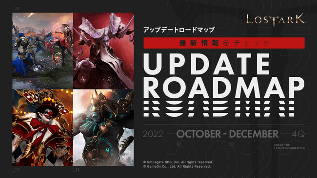 株式会社ゲームオン[本社:東京都渋谷区、代表取締役社長:文 智秀(ムン ジス)]は“すべての人に捧げるオンラインRPG”『LOST ARK』(以下『ロストアーク』)において、本日、最新情報として2022年12月までのアップデート内容をまとめた「アップデートロードマップ」を公開いたしました。また、2022年10月アップデートを10月19日(水)に実施することも併せて発表しております。