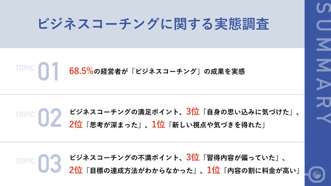 68.5%の経営者が「ビジネスコーチング」の成果を実感