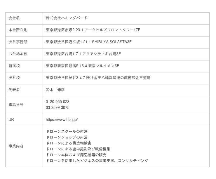 株式会社ハミングバード(ドローンスクールお台場・新宿・渋谷)について