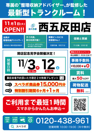【11月1日(火)オープン】見学から契約、解約まで完全非接触・非対面、お申し込みからご利用まで最短1時間!都内にて絶賛運営中のトランクルーム【スペラボ】が品川区西五反田に出店!