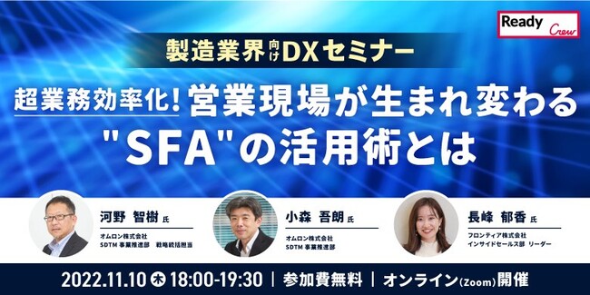新ビジネスマッチングサービス「Ready Crew(レディくる)」を運営する、フロンティア株式会社(本社:東京都渋谷区、代表取締役:高橋 政裕、以下 当社)は、オムロン株式会社(本社:京都府京都市、代表取締役社長 CEO:山田 義仁、以下 オムロン)と2022年11月10日(木)に共催セミナーを開催いたします。