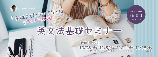 特設ページ:https://cafetalk.com/campaign/2022/seminar/english/Yoshi-Sensei/series-english-grammar/?lang=ja
