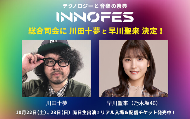テクノロジーと音楽の祭典「イノフェス」の総合司会にAR三兄弟・川田十夢と乃木坂46・早川聖来が就任!