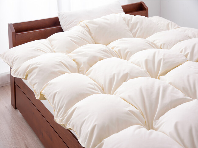 充填量は、羽毛布団に充填されている羽毛の量になります。充填量が多いほど暖かくお使いいただけますが、実際に使用される方の体格に合わせて睡眠の邪魔をしないよう、最適な充填量を選ぶことが重要になります。
