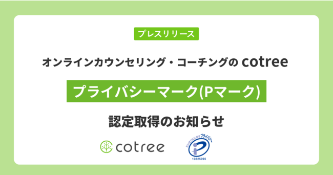 オンラインカウンセリング・コーチングの「cotree」を展開する株式会社cotree(本社:東京都港区、代表取締役:西岡 恵子、以下cotree)は、2022年9月29日付けで一般財団法人日本情報経済社会推進協会(JIPDEC)より「プライバシーマーク(Pマーク)」の認定を取得したことをお知らせいたします。