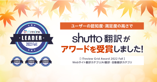 Webサイト翻訳サービス「shutto翻訳」、顧客満足度と認知度の双方が優れた製品として3年連続Leaderの称号を引き続き受賞!~「ITreview Grid Award 2022 Fall」