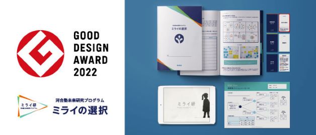 学校法人河合塾(本部:愛知県名古屋市 理事長:河合英樹)が 全国の高等学校に展開する河合塾未来研究プログラム『ミライの選択』が、2022年度グッドデザイン賞(主催:公益財団法人日本デザイン振興会)を受賞しました。高校生が自身のこだわりや価値観を大切にした進路選択ができるように設計し、生涯にわたって活用できる「ものごとの決め方」を学べるプログラムです。学校の進路探究・キャリア教育のカリキュラムとして展開されています。
