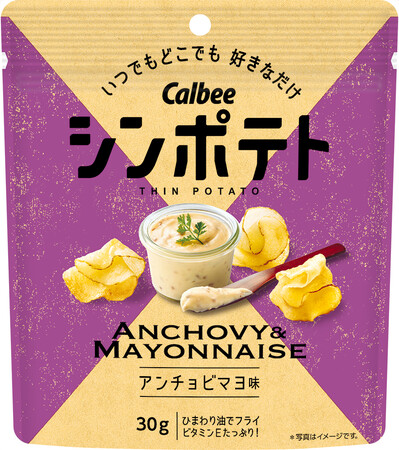 カルビー最薄のポテトチップスシリーズからクセになる新フレーバーが登場!アンチョビの独特な風味とマヨネーズのコクが堪能できる『シンポテト アンチョビマヨ味』