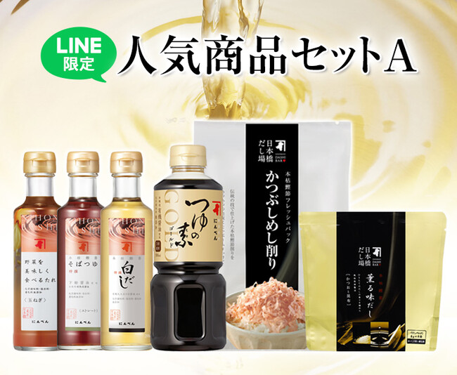株式会社にんべん(東京都中央区、代表取締役社長 高津伊兵衛)は、公式LINEアカウント「にんべん専門店」の3周年を記念して人気商品を詰め合わせた「LINE限定人気商品セット A」と「LINE限定人気商品セット B」を数量限定・特別価格にてLINE友だち限定で2022年10月21日(金 )より発売いたします。