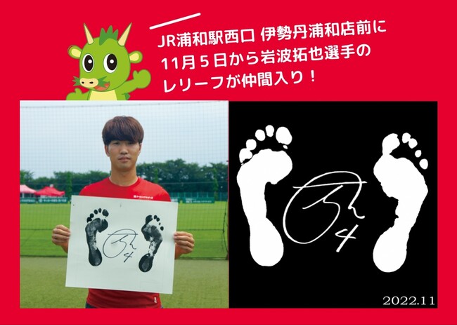 さいたま市サッカーのまちづくり推進協議会では、サッカーを核としたスポーツのまちづくりを推進するため、平成6年度から浦和レッズで活躍した選手・監督や、チーム・選手個人のタイトル獲得を記念したレリーフをJR浦和駅西口 伊勢丹浦和店前に設置しています。令和4年度は、浦和レッズのJ1リーグ2022シーズンホームゲーム最終戦に合わせて、11月5日(土)に岩波拓也選手のレリーフを新たに設置、公開します。