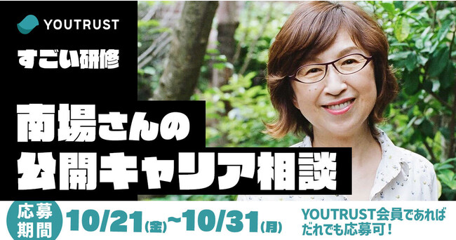 キャリアSNSおよびHR Tech SaaS「YOUTRUST」を提供する株式会社YOUTRUST(本社:東京都渋谷区、代表取締役CEO:岩崎由夏)は、株式会社デライト・ベンチャーズ(本社:東京都渋谷区、代表:南場智子、渡辺大)と共催で「すごい研修~南場さんの公開キャリア相談~」として、DeNAファウンダー南場氏に起業に関するキャリア相談ができる会(無償)を開催いたします。