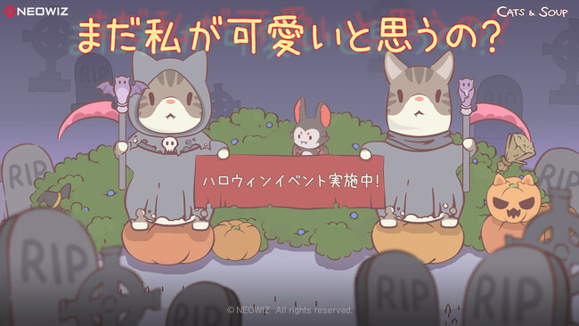 株式会社NEOWIZ(本社:韓国 京畿道城南市、共同代表:金 承徹(キム・スンチョル)/裵 泰根(ベ・テグン)がサービスし、ハイディア(代表キム・ドンギュ)が開発している癒し系放置型ゲーム『猫とスープ(Cats&Soup)』ではハロウィンシーズンを記念するイベントを10月21日(金)より開始いたしました。
