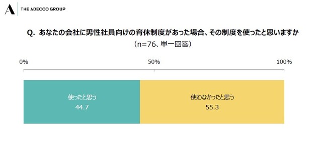 (2)男性育休制度があっても、5割超は使わなかったと回答