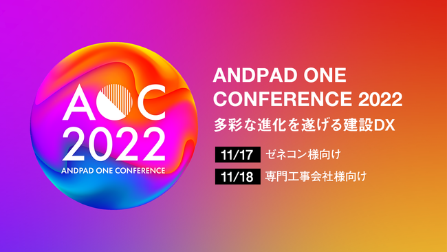 クラウド型建設プロジェクト管理サービス「ANDPAD」を運営する株式会社アンドパッド(本社:東京都千代田区、代表取締役:稲田武夫、以下アンドパッド)は、「ANDPAD ONE CONFERENCE 2022」と題したカンファレンスを開催します。本日、11月17日開催のゼネコン様向けおよび11月18日開催の専門工事会社様向けのプログラムを公開し、申込受付を開始いたします。