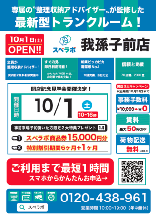 【11月1日(火)グランドオープン】見学から契約、解約まで完全非接触・非対面、お申し込みからご利用まで最短1時間!東京、大阪にて絶賛運営中のトランクルーム【スペラボ】が大阪市住吉区山之内に出店!