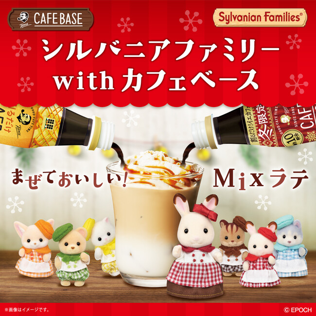 この度のコラボレーションでは、サントリー食品インターナショナルが販売する「ボス カフェベース」とコラボしたオリジナルジャンパーを着た「シルバニアファミリー」の赤ちゃん3にんセットが計10名様に当たるプレゼントキャンペーンを、カフェベース公式Twitter( @boss_cafebase )にて開催いたします。