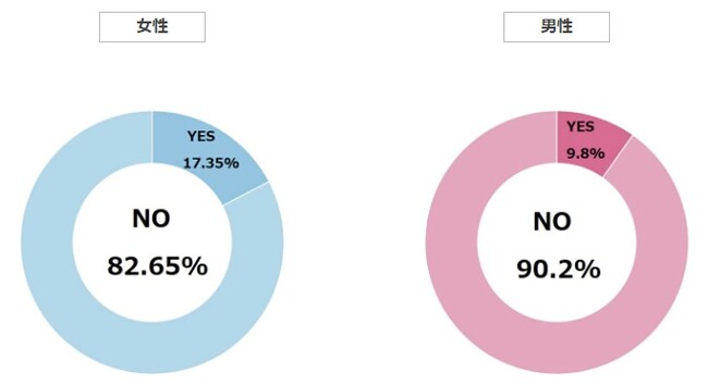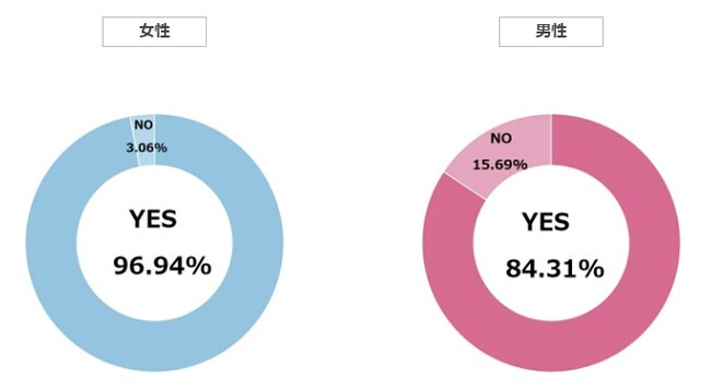 全体で見ると9割以上もの人が水風呂に入った経験があるとの回答でした。水風呂は冷たくてニガテ…という人もよく聞きますが、1度は水風呂を経験している人が多いようです。 男女別に見ると男性96%、女性84%で男性のほうがやや水風呂経験率が高いという結果に。