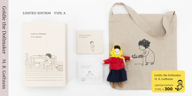 ニューヨークの伝説的絵本作家、M.B.ゴフスタイン(1940-2017)が1969年に出版した『Goldie the Daollmaker』の新装版には、新たに発見された線画を使用。通常版は新装英語版の書籍と日本独自企画の別冊『お道具箱のゴールディー』の2冊組で販売。 別冊には、本文の内容解説と絵本に登場する小道具集が収録されている。