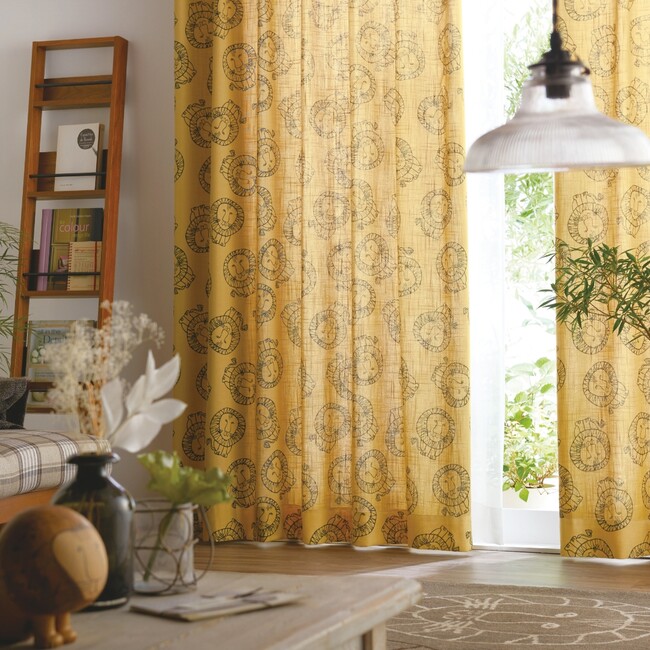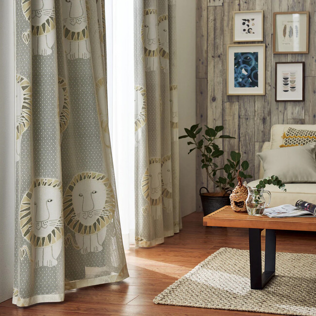 太い糸で編まれたざっくりとしたジャガードレースに、光を遮る機能を兼ね備えたカーテンです。さらには保温性も高く、おうちでお洗濯できる優れもの!マイキーとライオンの大柄のデザインがお部屋を華やかにしてくれます。