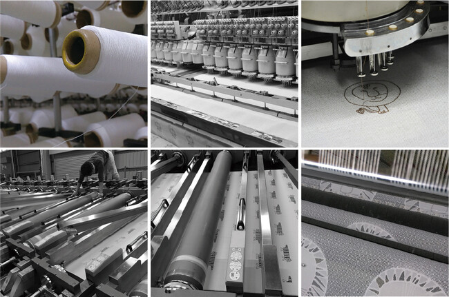 型作成、染色、プリントなどの生地づくりからカーテンに仕立てる縫製まで、すべての工程は日本国内の工場で行っています。工場というと無機質なイメージですが、そんなことはありません。日本の技術がつぎこまれた優秀な機械たちが一番いい状態で動いてくれるように、経験豊かなスタッフたちが常に目を配り、安定したクオリティを保っているのです。なかでも高い表現力が必要な刺繍工場では、ファッションの世界で活躍している刺繍機を使いこなし、キャラクターたちの姿を生き生きと描き出しています。ものづくりの現場は、まさに人と機械の共同作業。カーテンにはたくさんの人のぬくもりが込められているのです。