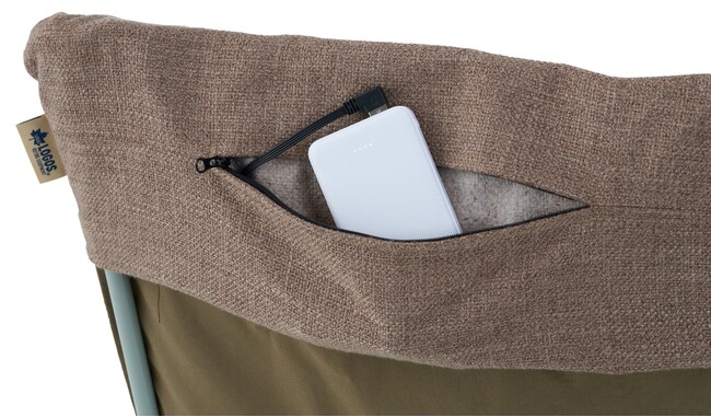 冬のアウトドアやスポーツ観戦にぴったりなふかふかのチェアカバー。「カーボンファイバーヒーティング」内蔵で、座面だけでなく背中も暖かくなり、寒い季節も快適に過ごせる。