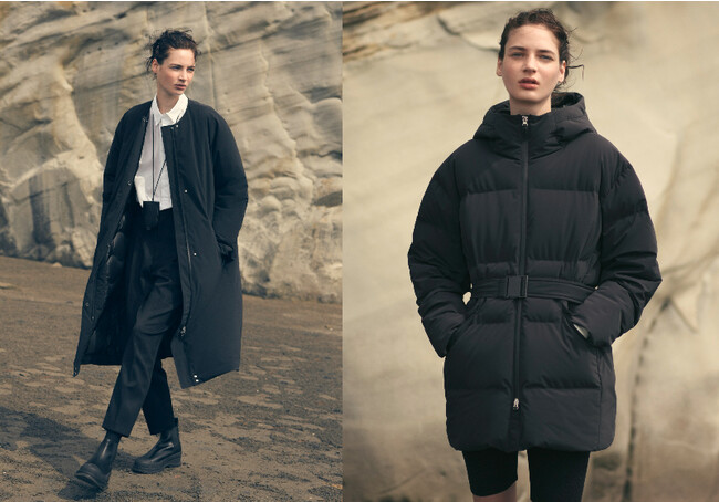 従来の水沢ダウンのレディース向け商品は、メンズ用に開発された商品をベースに女性でも着用できるようにサイズや丈感を調整した商品を展開していました。今回は水沢ダウンの特徴である防水性や保温性などの機能性はそのままに、より女性らしいシルエットで、着用シーンやコーディネートの幅が広がるようこだわったパターンをゼロから開発。今季は以下の2アイテムを新発売します。