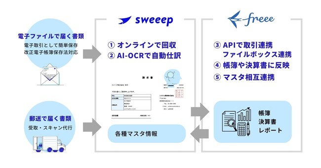 freee株式会社(本社:東京都品川区、CEO:佐々木大輔)はsweeep株式会社(本社:東京都渋谷区、代表取締役:村山毅)が提供する請求書処理AI「sweeep Invoice」とfreee会計のAPI連携開始をお知らせします。