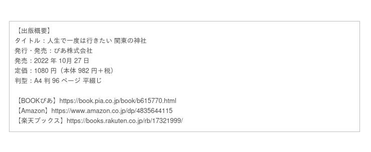 『人生で一度は行きたい 関東の神社』 https://book.pia.co.jp/book/b615770.html