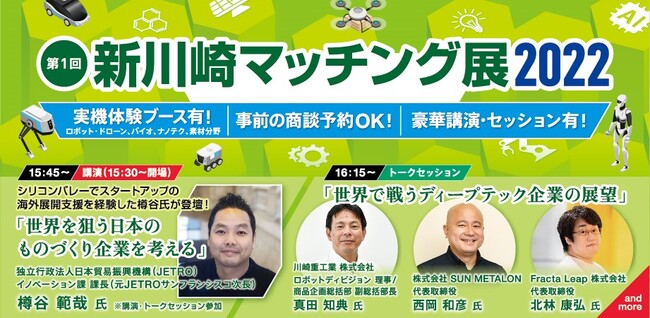 11/10(木)JETRO・先駆的技術ベンチャー・川崎重工業らが登壇する講演&トークセッションを“新川崎マッチング展2022”にて同時開催!