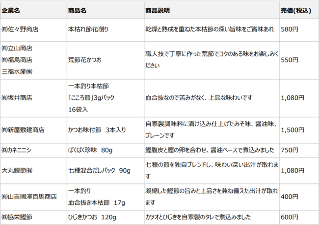 職人が目利きしたこだわりの鰹を使った鰹節と加工品を20種類以上販売予定です。