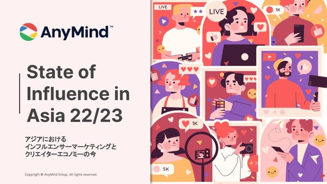 AnyMind Group株式会社(読み:エニーマインドグループ、代表取締役CEO:十河 宏輔、以下「当社」)は、アジアにおけるインフルエンサーマーケティングに関する年間レポート「State of Influence in Asia 22/23 ~アジアにおけるインフルエンサーマーケティングとクリエイターエコノミーの今~」を公開いたしました。