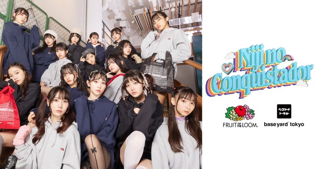 企画の第二弾として、今年結成8周年を迎え、今年初の武道館公演成功させ、勢いにのる、株式会社ディアステージ所属のアイドルグループ「虹のコンキスタドール」を迎えてセレクトショップ、著名ミュージシャンやアーティストなど、数々のコラボレーションも話題になっている、人気のブランド「FRUIT OF THE LOOM」(フルーツオブザルーム)とのファッションコラボ商品を発売致します!