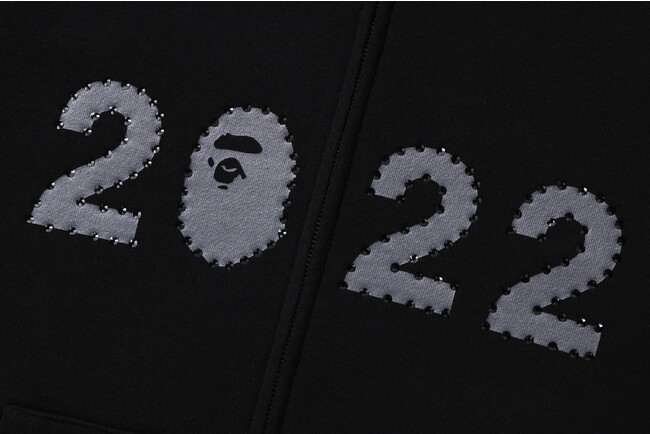 全体的にブラックとグレーを基調としたシックなデザイン。フロントにはラインストーンをあしらった「2022」を落とし込み、バックには記念デザインのグラフィックがプリントされています。