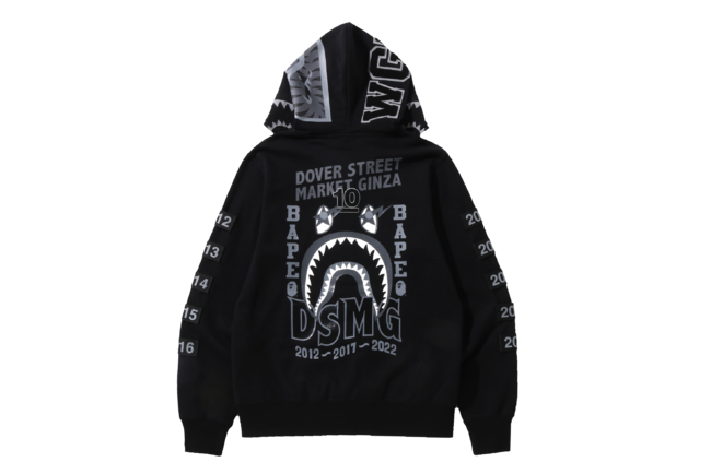 A BATHING APE(R)︎ことBAPE(R)︎は、DOVER STREET MARKET GINZA の10周年を記念し、スペシャルデザインのシャークフーディを発売します。