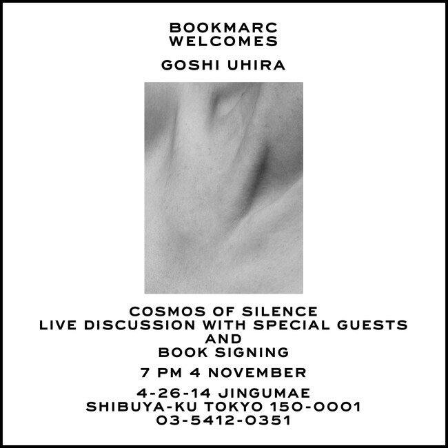 ニューヨーク発ファッションブランド「マーク ジェイコブス」が手掛けるブックストア『BOOKMARC(ブックマーク)』にて、モノクロームを基調とする精緻かつ静謐な仕事で国際的に活躍の場をひろげる、気鋭の現代美術家・デザイナーの宇平剛史 (うひら・ごうし)氏のアートワークとデザインワークで構成された初の作品集『Cosmos of Silence』(ORDINARY BOOKS刊)の出版を記念して、著者・宇平剛史氏と、tattva編集長・花井優太氏、インディペンデント・キュレーター・板橋令子氏による特別鼎談を開催します。鼎談終了後著者のサイン会も行います。皆様のご来店お待ちしております。