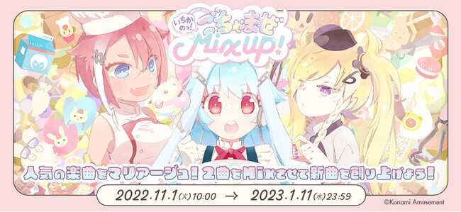 株式会社コナミアミューズメントは、アーケードゲーム「BEMANI(ビーマニ)」シリーズの連動イベント『いちかのごちゃまぜMix UP!(ミックスアップ)』を11月1日より開催することをお知らせします。