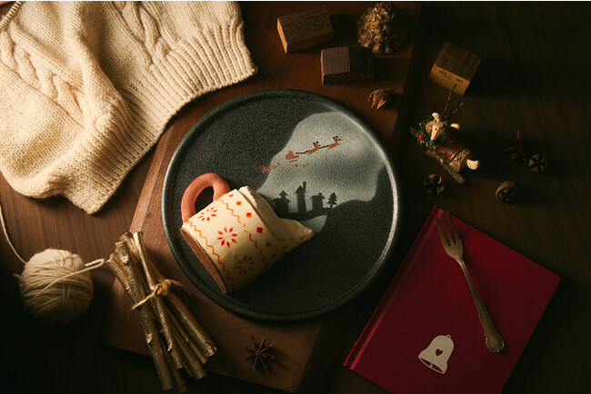 かわいらしいクリスマス仕様のマグカップは、コーヒーガナッシュモンテやキャラメルムースを使用したケーキで表現。