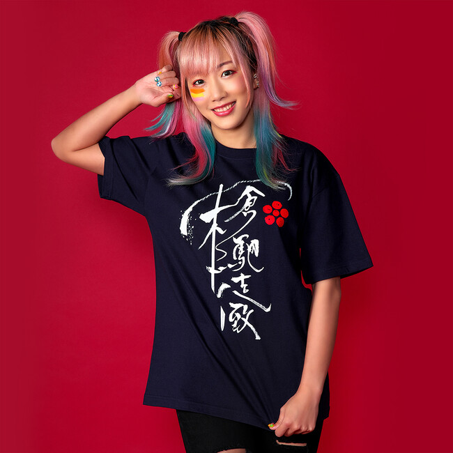 「傾奇御免」の書をデザインした何にでも合わせやすい着心地なめらかなシャツ。